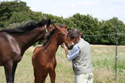 Les poulains sont manipulés dès les premiers jours ( licol, longe, prise des pieds…).
